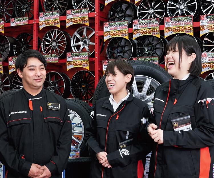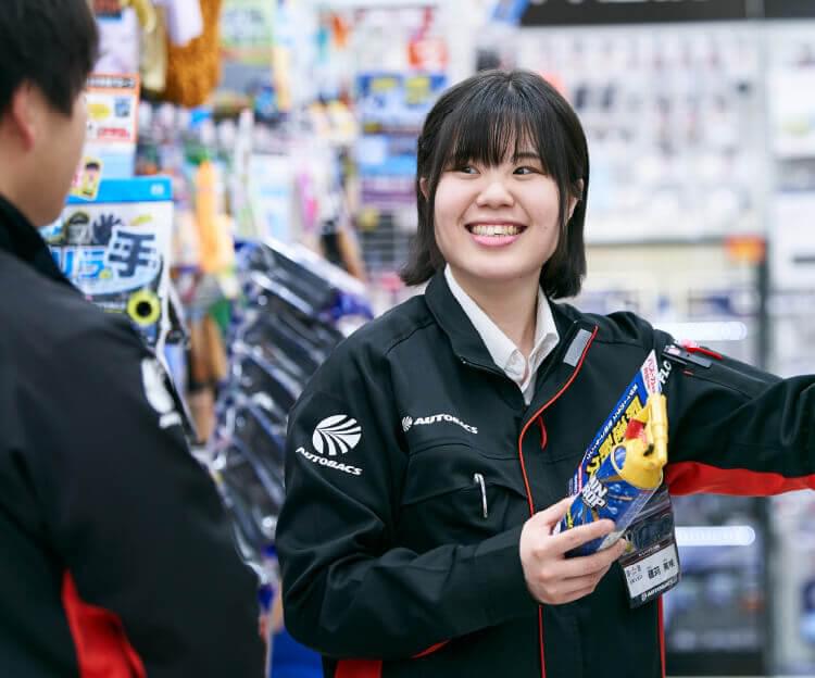 カー用品を扱う店舗のため、車好きが集まっているように思われるかもしれませんが、実はそうでもありません。入社して興味をもつようになった社員もいれば、特別に好きというわけではないという社員もいます。車好きではないと勤まらない仕事ではなく、お客さまは車に詳しい方ばかりではないため、むしろお客さま目線の接客ができるという側面もあります。共通しているのは、目の前にいる人に喜んでもらえる仕事がしたいということと、好きな地元で働きたいという気持ちです。