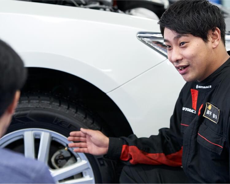 お客さまとの信頼関係は、自分の目標数字の達成にもつながります。頑張れば褒めてもらえて、昇給や賞与、役職へのキャリアップというカタチでしっかりと評価してくれる環境があること。それが入社理由のひとつです。目標も会社から与えられるものだけじゃなく、上司と相談しながら自分自身で決められるんです。去年の自分を超えてやろうって、やる気が出ます。500店舗以上あるオートバックスグループ内で、自分がどれだけの成果を残したかがわかるコンテストがあるんです。そこに「錆止めサービス」の実績を競う部門があり、やるならとことんやろうと気合を入れて、一度だけですが日本一になったこともありました。人それぞれだと思いますが、競争は嫌いじゃありません。むしろ燃えるタイプ。お客さまにたくさん喜んでいただけるほど、自分にも還元されて嬉しい気持ちになる。この循環があるから、安心して仕事に打ち込むことができています。