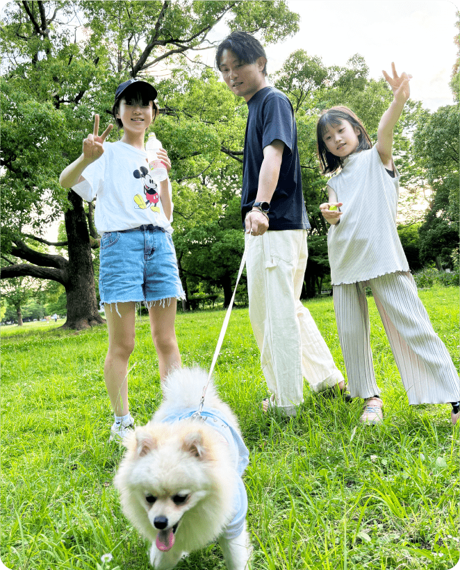 一緒に犬の散歩をしたり、バスケットボールをしたり、子どもが生まれてからは、休日は家族と過ごすことがほとんどです。