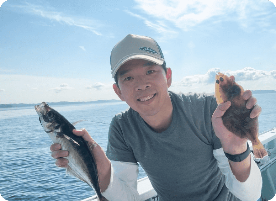 休日は、子どもと共に海釣りに出かけます。釣りたての魚をその場で調理し、お刺身やフライ、煮付けにして味わう瞬間は何物にも代えがたい喜びです。